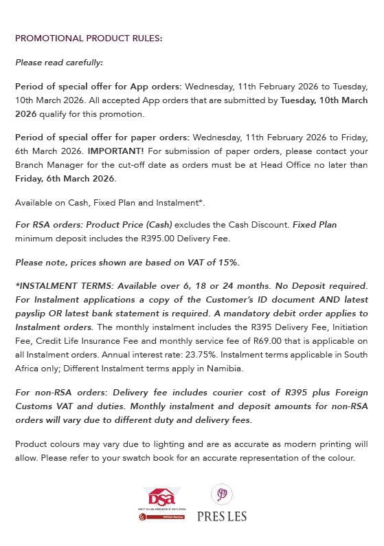 Pres Les products are sold exclusively through our network of Sales Consultants across Southern Africa. Our Sales Consultants are trained professionals who will assist and guide you in making the best product investment to create the style you have been dreaming of.